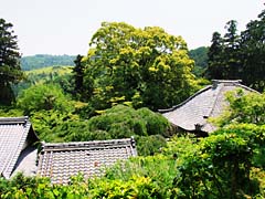 京都市西京区大原野小塩町にある天台宗「十輪寺」に行きました。本堂は、屋根が跳ね上がった珍しい屋根の形をしています。この形を鳳輦(ほうれん)というのだそうです。本堂前にはこのような樟の巨木があります。案内板に「大樟樹 樹齢800年、本尊が樟で造られているのでその分身としている。伝説によると地蔵菩薩の神力で一夜にして大樟樹にならしめたというので、願かけ樟ともよばれ神木としている。」とありました。