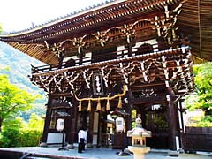 十輪寺からさらに山中に入ると、天台宗「善峯寺(よしみねでら)」があります。大きな山門から入ると正面に、西国三十三所第20番札所の観音堂があります。御詠歌は「野をもすぎ 山路にむかふ 雨の空 善峯よりも 晴るる夕立」です。鐘楼ですが、「厄除けの鐘 貞享2年(1685)桂昌院寄進」とありました。
