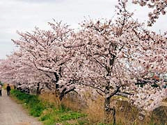 木津川堤防にある桜並木です。すべてがソメイヨシノが植えられています。満開の桜並木になっていました。焼き肉の臭いが漂っていなかったのがよかったです。