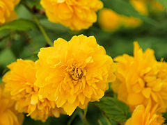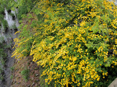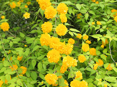 玉川の両側の堤防に咲き終わった桜の木の間に、八重咲きのヤマブキが咲いています。桜から山吹へと見事な春のリレーです。
