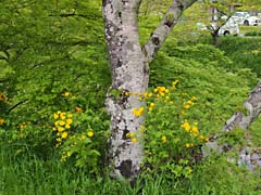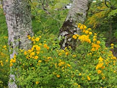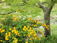 大きな樹木の根元で、秘めやかに咲くヤマブキというイメージで撮してみました。