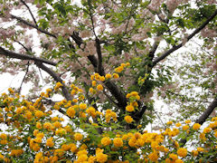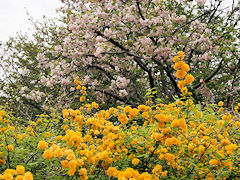 まだ、八重咲きの桜が咲いていました。ヤマブキと一緒に撮して見ました。これぞ春のリレーですね。