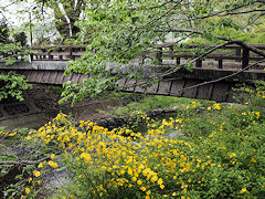 歴史ある玉川と一緒にヤマブキと桜を撮して見ました。玉川沿いに歩いて行くと、このような古風な佇まいの橋が架かっていました。よく見るとデザインは古風でも全てコンクリートの橋でした。