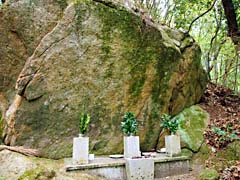竹林の中に花崗岩の巨石があり、そこに線刻された三体の弥勒石仏がありました。鎌倉から室町時代に農民たちによって掘られたものだそうです。風化が進んでよくわかりませんが、一体だけがなんとかわかる程度でした。