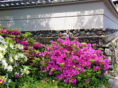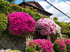 三室戸寺を出て宇治橋まで戻って宇治川に沿って歩いて行くと、見事にツツジが咲いている家がありました。大きなツツジの玉がゴロゴロと転がっているような・・・・
