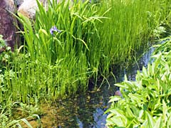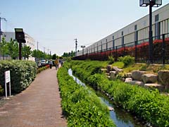 小さな小川が流れています。まぁ小さい川を小川というのですが・・・ 杜若も咲いています。カメラを引くとこんなところに小川が流れています。ここは、京都市南区上鳥羽にある「鳥羽水環境保全センター」で、つまり下水処理場です。下水処理した水の一部をここに流しているのです。