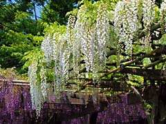 いわゆる藤色のフジがほとんどですが、一ヵ所白色のフジがありました。これもなかなか良いものですよね。