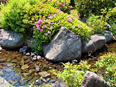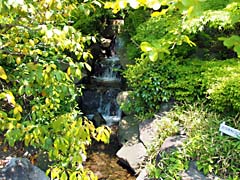 藤棚があるだけではなくて、小さな滝がある小川が流れています。小さな里山に入ったような感じがします。場所が下水処理場なので清流には力を入れているようです。