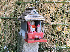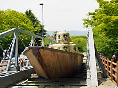 新しくなった上津屋橋(流れ橋)です。外観を見ると以前の流れ橋と変わらないのですが、橋脚は5本のうち中の3本は金属になっています。ワイヤーロープも全て新しいものになっていました。このような変更で流れ橋から流れにくい橋になったのでしょうか。この橋を守るお地蔵さんも綺麗になっていました。
