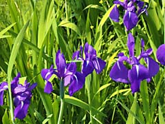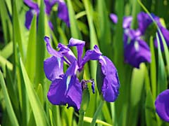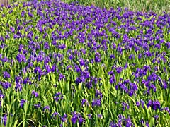 ハナショウブ、アヤメ、カキツバタは、植物学ではいずれもアヤメ科アヤメ属の同じ仲間なのでよく似ています。その見分け方ですが、ハナショウブとカキツバタは湿原に咲いている。アヤメは陸地に咲いている。花弁の根元に特徴があり、白色がカキツバタ、黄色がハナショウブ、網目模様になっているのがアヤメです。