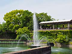 インクラインの先はこのような噴水があり動物園が眺められます。足下にはカキツバタとキショウブが咲いていました。