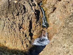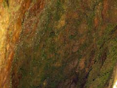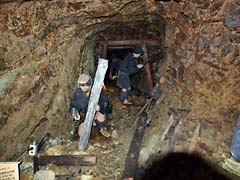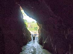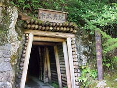 ところどころで白い斑点が見られますが、これが金ということだそうです。そしてここが出口になっています。坑道が至るところにある金山です。どこにでもある山の風景ですが、まだ発見されていない鉱脈があり大量の金が眠っているというようなことはありえないのでしょうね。