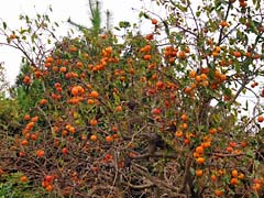 花菖蒲が咲いていました。この時期でも咲くことがあるのですね。柿も実を多く付けています。渋柿なので残っているのでしょうか。