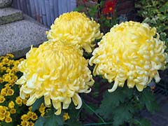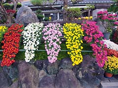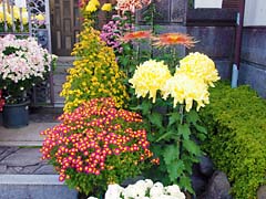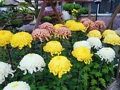 菊が見事に咲いている民家がありました。そう言えば過日、京都新聞の地方版に紹介されていた菊がきれいな家はここでした。それ以前に来た時は道路から見ただけでしたが、今回は門扉が解放されて庭に入って見ることができるようになっていました。