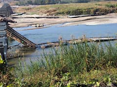 上津屋橋(流れ橋)は、8月9日の台風11号による大雨で現在このような状態で放置されています。今回で21回目の流失で4年連続です。橋のたもとにあるお地蔵さんも寂しそうです。京都府知事も視察に訪れ永久橋の検討も指示したとか。復旧するのに数千万円かかるそうですが、少し高いように思います。費用の内訳書を見てみたいものです。