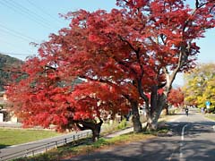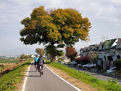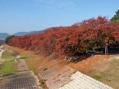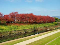 八幡の背割堤です。春にはソメイヨシノの桜並木で有名なところですが、今はこのように紅葉の並木になっていました。