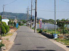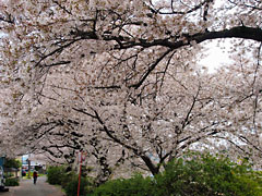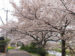 桜並木の道路を挟んで反対側は、民家が並んでいます。商店は一軒もない住宅地です。多くの見物客が通ったりこれからは散った花弁の掃除と大変だろうと思います。