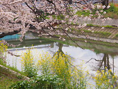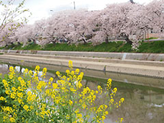 久御山町東一口の前川堤の桜最終回は、桜に彩を添える菜の花(セイヨウカラシナ)と一緒に写してみました。暖かさが増すようです。
