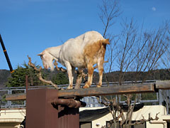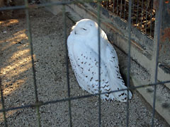 京都市動物園その5。「シロフクロウ」で白黒まだら模様なのがメスで、真っ白なのがオスです。北緯60度以北のツンドラ地帯に生息しています。ヤギがこんな高い橋の上にいました。橋の下は人が通っています。ヤギの渡り廊下ですが細くて高いところも平気なようです。