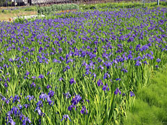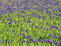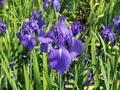 杜若が一面にさいていました。今が見頃です。ところで、カキツバタ、ハナショウブ、アヤメの見分け方はご存じでしょうか。カキツバタ、ハナショウブは湿原に咲く、アヤメは排水の良い草原に咲く。花弁の元を見るとカキツバタは白色の目型模様がある。ハナショウブは、いろんな花があるがすべて黄色の目型模様である。アヤメは、網目状の模様がある。ということで、ご覧のように白色の模様があるのでこれはカキツバタです。