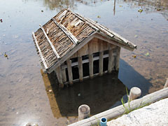 カキツバタが咲いている一角にこのような祠が水中にポツリと建っています。案内板によると「雨乞い地蔵さん」だそうで水がめがありその中に石のお地蔵さんが眠っておられるそうです。日照りが続いて水不足が深刻になると、地蔵さんを水瓶から引きあげて、常楽寺の住職が祈祷すると雨が降るということです。20年前の平成6年に行われ雨が降ったそうです。NHKがテレビ放映したとか。