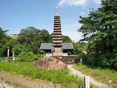 般若寺のシンボル的存在の「十三重石寶塔」です。重要文化財に指定されています。花崗岩で作られ高さ14.2mあります。最上部にあるのが、相輪で4代目のもので昭和の大修理で製作されたもの。右の写真は、鎌倉時代の創建当初のものです。