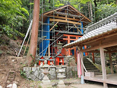 布目ダム湖の傍に「戸隠神社」がありました。社殿はご覧のように修理中でした。静かな山道を少し登ったところにあります。