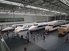 名古屋市港区金城ふ頭にあるJR東海の「リニア・鉄道館」に行きました。左が未来の鉄道リニアモーターカーです。スマートですね。次が300系新幹線、次の0系新幹線は、昭和39年に開業当時運行されたものです。リニアと比べるとカッコ良さは雲泥の差があるような・・・・