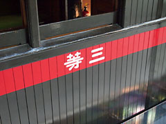 このSLは、「C62(シロクニ)」と言って東海道本線を特急「つばめ」として走っていた蒸気機関車です。今は普通車とグリーン車がありますが、昔は一等車、二等車、三等車とあったようです。三等車の内部は、今の通勤電車とほぼ同じです。