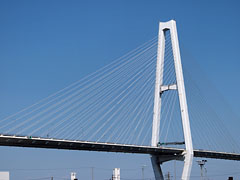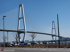 リニア・鉄道館の近くを、このような高速道路がありました。なかなか綺麗な放物線を描いているので、思わずシャッターを押してしまいました。支柱から出ているワイヤーが、蜘蛛の巣のような見事な等間隔で伸びています。