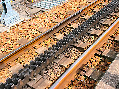「アプトいちしろ駅」から「長島ダム駅」間が日本で唯一のアプト式鉄道になっています。写真のように線路の真ん中に歯形のレールがあり、それにアプト式機関車を接続