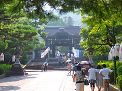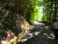 竹田城跡へは、始めは舗装道路が続いていたので観光地化されていると思ったのですが、途中から普通の山道になってきました。遠くの町並みを見ると竹田城は山城であることがよくわかります。そして、城の石垣が遠くに見えて来ました。