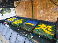 お墓参りに、東本願寺の大谷祖廟に行きました。今年は「俱会一処(くえいっしょ)」という花文字でした。『仏説阿弥陀経』というお経にある言葉だそうで「俱(とも)に一つの処(ところ)で会う」生きている者と亡くなった人と極楽浄土でともに会うという意味です。極楽浄土で会うということは、早く浄土に来いということではなくて、この世で果たすべきことを終えるまで、信頼して待っているということです。お盆らしい言葉だと思います。