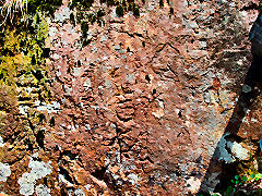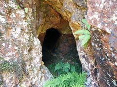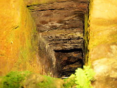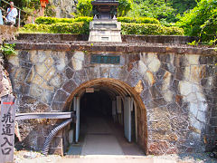 生野銀山には露天掘りの跡もあります。昔は、ここを発見した後に地中に堀り進みました。江戸時代の坑道入り口もこのように残っていました。そして、戦国時代江戸時代に鉱夫たちが仕事の合間に坑内の安全を念じて、彫った南無阿弥陀仏と仏像だそうですが、風化していてよくわかりませんでした。