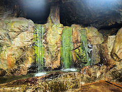 坑内に一カ所滝があり豊富な水が流れていました。(動 画)このような湧水を放置すれば坑内が水没するので、昔も今もその対策が大変なことだろうと思います。