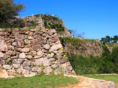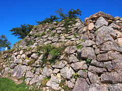 ここの石垣は、穴太(あのう)積みと呼ばれるもので、現在の滋賀県大津市坂本穴太の石工衆の技術です。原石を加工せずそのままの状態で積み上げる施工方法なので、経年劣化に強いのが特徴とされています。
