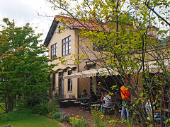 滋賀県近江八幡市にある「八幡堀」です。時代劇の撮影によく登場する場所です。その近くにあったカフェですが、なかなか趣がある建物でした。