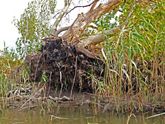 水郷もこのように広いところもありました。先の台風で増水して樹木が根こそぎ倒れています。