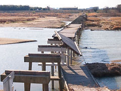 流れ橋は、昨年の10月1日にこのように流れてしまいました。三重県の大雨と上流にある高山ダムが大量に放流したためとか。橋が流れないように調整して放水するのが、ダムなのではないでしょうか。橋の近くにある石仏もそう思っておられることでしょう。