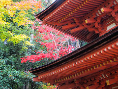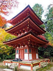 この五重塔は、建保2年(1214年)に完成したもので国宝に指定されています。高さが17.7mと16.1mの室生寺に次いで小さい塔です。因みに大きいのは東寺の54.8mです。