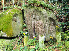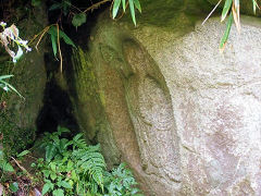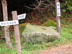 この岩のこの窪みが、唐臼に似ていることからカラウスがカラスの壺になったそうですが、寺院などの基礎石だったのではないでしょうか? 「からすの壺二尊」があり、地蔵菩薩立像は、康永二年三月廿四日(1342年)願主 勝珍。阿弥陀如来坐像は、康永二年三月十五日願主 恒性。という銘文があります。こんな山中の寂しいところに石仏が2体、現在でも寂しいところですから当時はさぞかし・・・・と想像しますが、今より賑やかだったりして・・・