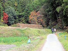 当尾の石仏を撮しに岩船寺方面にスタート。「やぶの中の三尊」は左から阿弥陀如来坐像、地蔵菩薩、十一面観音菩薩立像で弘長二年(1262年)という銘があります。次が「あたご灯籠」で、ここから山の中を歩いて岩船寺に行きます。