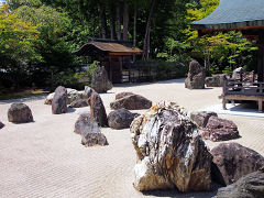 金剛峯寺の渡り廊下を更に進むと「蟠龍庭(ばんりゅうてい)」という500坪のわが国最大の石庭があります。勅使門から見ると、左に雄龍、右に雌龍があるという案内板に書かれてありましたが、もう少し高いところから全体を見ないとよくわからないというのが本当のところです。(動 画)