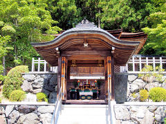 各家庭に家紋がありますが、金剛峯寺の寺紋は通常一つなのに二つもあります。豊臣秀吉拝領の清厳寺の寺紋の「五三の桐」、高野山の鎮守、天野神社の定紋の「三頭右巴」があります。この二つの紋はどのように使い分けているのでしょうか。 真然大徳廟がありました。真然僧正は、弘法大師の甥で高野山第二世として高野山の発展に寄与した人物だそうです。