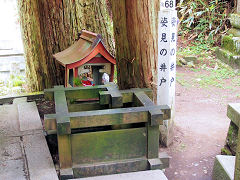 弘法大師・空海が高野山を開いて、その表参道に道標として立てられたのが、町石で109m毎に180基立てられました。この道は2004年7月7日世界文化遺産として登録されました。次は弘法大師が、休憩のために腰掛けたと伝えられている「大師腰掛け石」です。次が、「姿見の井戸」がありました。今でも水はあります。