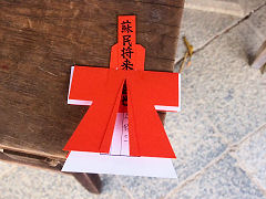 北区紫野にある「今宮神社」に行きました。やすらい人形があり名前を書いて自分自身の病を人形に移して納めます。この石は、「重軽石」で三度叩いて持ち上げると重くなり、今度は願いを込めて三度撫でて持ち上げると軽く成れば、願いは成就するといわれています。