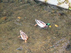 橋に座って絵筆を奔らせている人、その足下にはオシドリが仲良く泳いでいました。そんな光景を紅葉した桜が眺めていました。秋の日の一コマでした。