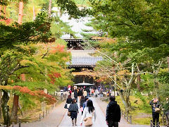 熊野若王子神社から永観堂・東山高校を過ぎると南禅寺があります。日本三大門のひとつの三門は、歌舞伎「楼門五三桐(さんもんごさんのきり」石川五右衛門の台詞「絶景かな、絶景かな」で有名ですが、実際は五右衛門が死んで30年後に完成した門だそうです。その門の傍に高さ6m程の石灯籠がありますが、大きさでは日本一の石灯籠だそうです。