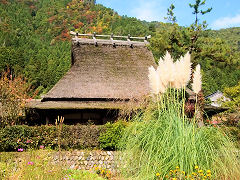 この建物は資料館になっていて有料ですが内部を見ることが出来ます。風呂と屋根裏ですが昔の生活が偲ばれます。囲炉裏もありましたが、現在は茅葺き屋根だけで内部は大きく変化していて囲炉裏ではなく、石油ストーブだそうです。だから昔は囲炉裏の煙が茅葺き屋根を保護したので40~50年は保ったが、今は20年ぐらいしか持たないとか。化石燃料は、便利だけれど失うものも多々あるということです。