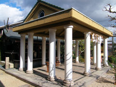 京都府八幡市にあるものですが、何の建物がわかるでしょうか。神社のイメージとだいぶ異なった「飛行神社」です。大空を飛んだのはライト兄弟より日本人の「二宮忠八」だったかもしれない・・・・というお話です。明治24年(1891年)4月にゴム動力プロペラ式飛行器(機ではなく器です)の飛翔実験に成功して、人が乗れるものを明治26年に設計を完了しましたが、日清戦争が勃発して出兵、軍用機に転用しようと設計図を添えて上申したが却下されたので、独力で製作することを決意。製作を開始しましたが、ライト兄弟の成功の報に接して二番煎じは可としない忠八は製作を断念する・・・・ということです。その後飛行機の時代になり空の犠牲者も多くなったので、その霊を弔うために忠八は私財を投じて大正4年(1915年)に神社を設立したのが、この飛行神社ということです。